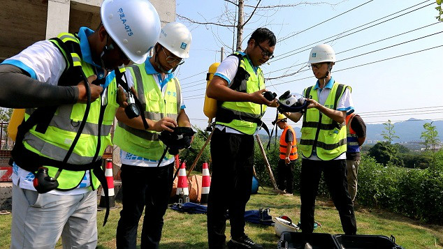 佩戴正壓式呼吸器準(zhǔn)備進(jìn)入管廊內(nèi)救援
