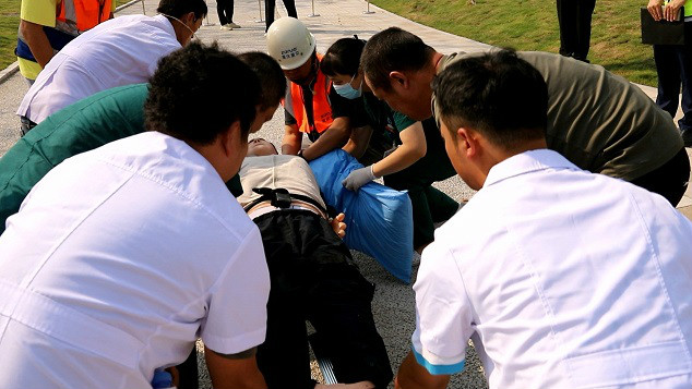 醫(yī)院救護(hù)車到達(dá)救援現(xiàn)場,將傷者抬至救護(hù)車上,前往醫(yī)院進(jìn)一步治療
