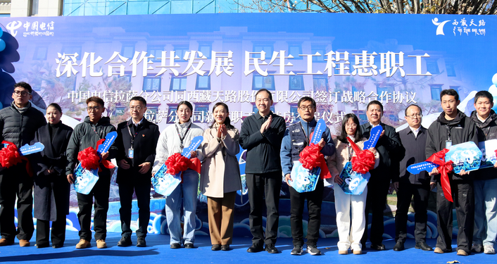 點(diǎn)擊量:4728? 12月1日上午,以“深化合作共發(fā)展 民生工程惠職工”為主題的戰(zhàn)略合作簽約暨中國電信拉薩分公司新建職工周轉(zhuǎn)房交房儀式順利舉行。西藏建工建材集團(tuán)有限公司黨委書記、董事長莊存?zhèn)?,中國電信西藏公司黨委書記、總經(jīng)理張世敏出席儀式講話,見證戰(zhàn)略協(xié)議簽約,并為新建周轉(zhuǎn)房揭牌。 ? ? ? 西藏天路股份有限公司黨委書記、董事長頓珠朗加,中國電信