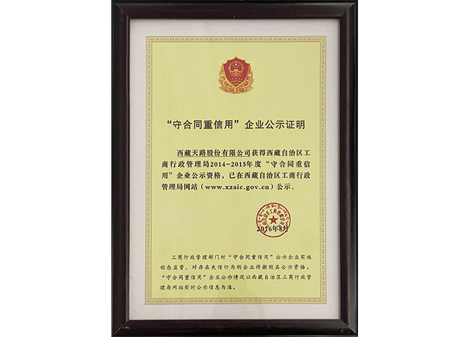 “守合同重信用”企業(yè)公示證明