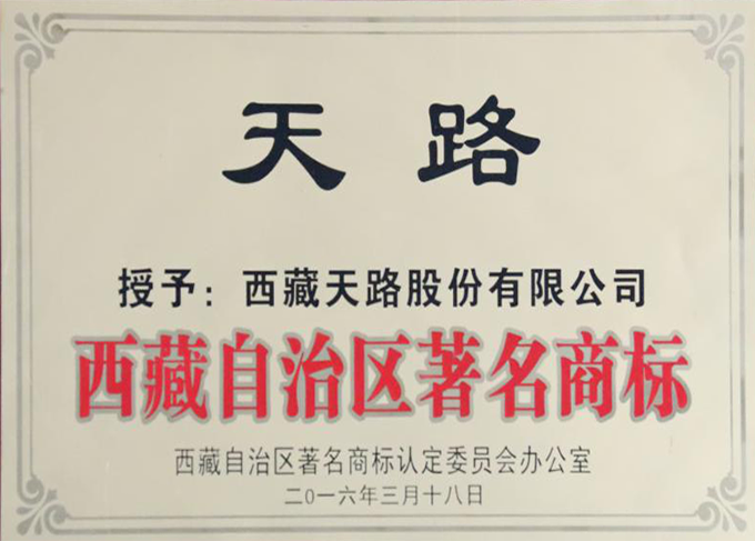“天路”被評(píng)定為西藏自治區(qū)著名商標(biāo)
